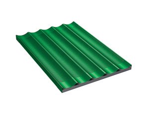 60×40 , küçük delikli ve baget için oluklu alüminyum tepsi. Dalga yapılı tepsi, yeşil renkte. Taze/dondurulmuş/derin dondurulmuş bagetler için kullanıma uygundur. Kombi-pişirme : 180-190°C arasında 20-30% nemlilikte olmalıdır.