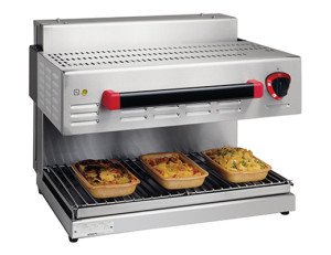 18-10 paslanmaz çelik yapı, çıkarılabilir damlama tepsisi. Yükseklik ayarlı, AISI304 paslanmaz çelik ısıtıcılı, ısıtıcılar 5-pozisyon ayarlı svicli. Kromaj kaplı çelik ızgara.
