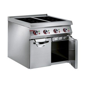 Paslanmaz çelik 18-10 serbest oturmalı, 20/10 üst panel. Dört bağımsız “BÜTÜN ZONLU” pişirme bölümleri, 7 kW. Tava algılama sensörü ve otomatik kontrol aygıtları. Elektronik bağlantıları koruyucu soğutma sistemi. Üst yüzey “Ceran” seramik cam malzeme.