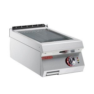 18-10 Paslanmaz çelik 12/10 üst panel. Parlatılmış Fe510D çelik pişirme pleyti. Pleytler altındaki ısıtıcılar, Paslanmaz çelik AISI 309. Sıcaklık kontrolü 100 – 270°C.