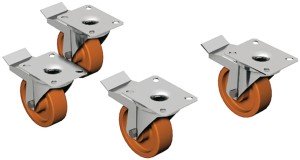 4’lü tekerlek seti kombi ve konveksiyonlu fırınlar için ve seri imalat ürünleri için uygundur. AISI 304 paslanmaz çelik, frenli ve plastik tekerlekli.