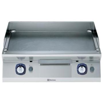 - Gazlı set üstü ızgara, karbon çeliği düz pleytli, eğimli tablalı, demonte sırtlık ve spatula, derinlik 730 mm - 800 mm