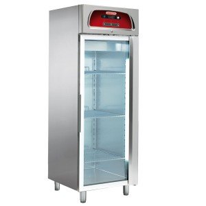 İç dış AISI 304 paslanmaz çelikten imal edilmiştir. Kanatlı evaparatörlü soğutma sistemi. Elektronik termometre ve termostat. Isıtma elemanları ile defrost sistemi Kondens evaparatör sayesinde drenaj. Sökülebilir AISI 304 paslanmaz çelik raf destek kiti. Tek kompartman 2/1 GN, tek cam kapı.