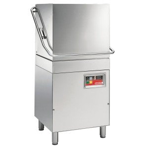 AISI 304 paslanmaz çelik. çift cidarlı, önden açılan, giyotin tip. Sepet dahildir. Parlatıcı dispanseri. 2 programlı. Kapasite: 1100 tabak/saat.