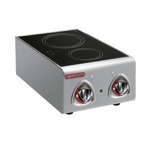 Serbest oturmalı, AISI 304 paslanmaz çelik yüzey. 10/10 kalınlık. Üst yüzey “Ceran” seramik cam. Enfraruj ısıtma elementi ile ısıtma. 1,7 ve 2,5 kW, 2 bağımsız kontrol ünitesi ile çalışır.