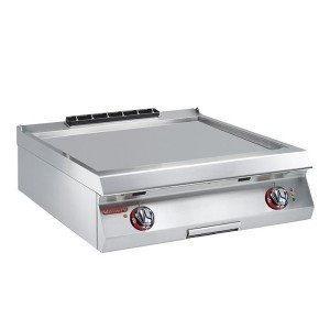 18-10 Paslanmaz çelik, 12/10 üst panel. Parlatılmış Fe510D çelik pişirme pleyti. Pleytler altında yer alan iki bağımsız ısıtıcı grubu, Paslanmaz çelik AISI 309. Sıcaklık kontrolü 100 – 270°C.