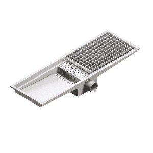 18-10 AISI 304 paslanmaz çelikten imal edilmiş, yer ızgarası, 0,8 mm kalınlıktadır. Su sızdırmaz, sifonlu 80 mm çapında tahliye vanalıdır. Çıkarılabilir ızgara 18-10 AISI 304 paslanmaz çeliktir -2 mm kalınlıktadır. Izgara boyutu: 25x25x30 h. Paslanmaz çelik filtre tüm modellerde mevcuttur. Yanda atık su toplanma hazneli.